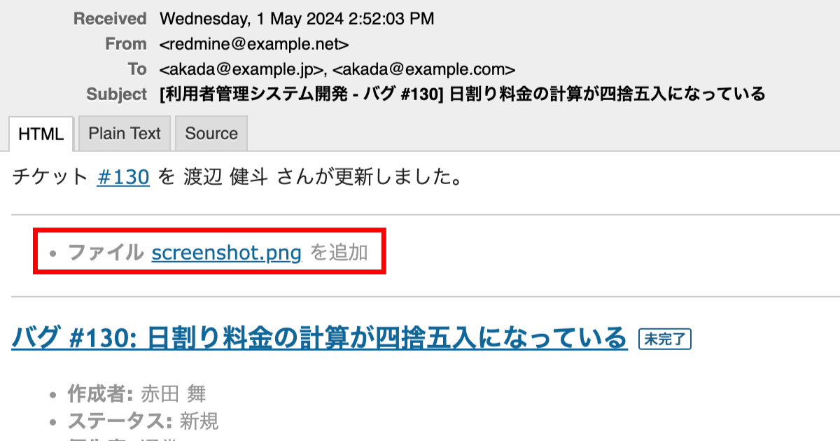 (例)ファイルの添付だけでチケットを更新した場合のメール通知